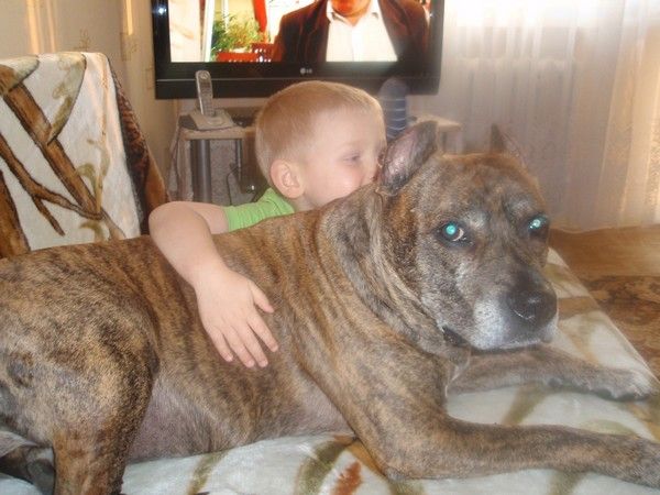 Amstaff jest odpowiedni dla dzieci pod warunkiem że będziemy w stanie zagwarantować mu odpowiednią ilośc czasu. Nie akceptują zmian i nie mogą byc zaniedbywane. Gdy pojawia się dziecko w domu w którym jest juz pies nie należy dać mu odczuc że jest gorszy, nie wolno go odpychać, trzeba mu pozwalać na kontakt nawet z niemowlakiem.