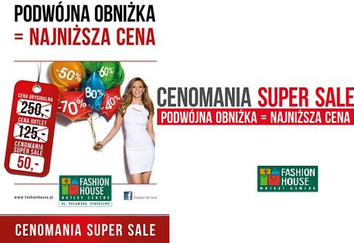 Wielkimi krokami zbliżają się wakacje letnie, czyli czas odpoczynku, plażowania i sportów wodnych. Dla wszystkich klientów Fashion House, którzy planują uzupełnienie garderoby przed wyjazdem, nadarza się wyjątkowa okazja. Od wielkiego eventu -70% rozpoczynamy ”Cenomanię” czyli potrójną, wielką wyprzedaż – gigantyczne rabaty od już i tak niższych cen outletowych! Wyprzedaże obejmują zazwyczaj znaczną część oferowanych kolekcji i polegają na przecenianiu pełnowartościowych towarów.