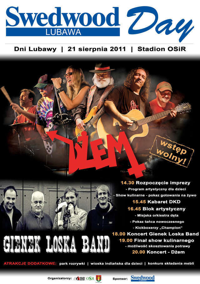 Niektórzy zapewne już nie mogą doczekać się najbliższej niedzieli. I  słusznie, bo na stadionie Ośrodka Sportu i Rekreacji w Lubawie wystąpią  artyści "z górnej półki". Gwiazdą tegorocznego Swedwood Day jest legenda  polskiego bluesa i rocka — zespół Dżem.