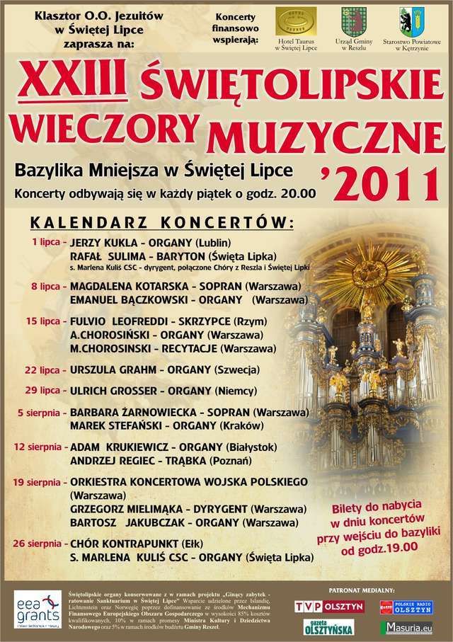 XXIII Świętolipskie Wieczory Muzyczne to prestiżowa, cykliczna impreza o randze międzynarodowej, mająca charakter koncertów muzyki organowej. Odbywa się w Świętej Lipce w sezonie letnim w każdy piątek lipca i sierpnia o godz. 20.00, od ponad 22 lat.