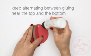 Całość dociskamy mocno i odczekujemy kilka minut, aby warstwy dobrze się skleiły. Następnie delikatnie rozkładamy powstałą półkulę i sklejamy ją tak, aby utworzyła pełną bombkę. Na koniec przez środek przewlekamy wstążkę, którą dla ładniejszego efektu można dodatkowo ozdobić koralikiem.