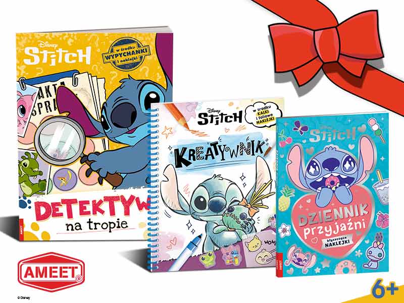 Wszystkich fanów uroczego, choć nieco psotnego niebieskiego kosmity z pewnością oczaruje ten niezwykły zestaw 3 książek od wydawnictwa AMEET. Z pełną humoru książką Stitch. Kreatywnik dziecko będzie miało okazję nauczyć się rysować w stylu mangi i kawaii. Krok po kroku pozna tajniki tej popularnej japońskiej sztuki rysunku, a także sprytne sztuczki i najlepsze techniki. Z kolei dzięki książce Stitch. Detektyw na tropie będzie mogło przećwiczyć całkiem inne umiejętności i wcielić się w rolę śledczego. Czeka na nie tropienie śladów, znajdowanie dowodów i typowanie podejrzanych – cała masa detektywistycznej frajdy. Dzięki wypychankom i naklejkom do zadań zabawa jest jeszcze fajniejsza. W zestawie znajduje się także wyjątkowy bestseller - Stitch. Dziennik przyjaźni, czyli książka z błyszczącymi naklejkami, dzięki której Twoje dziecko będzie mogło w kreatywny sposób spędzić czas ze swoim najlepszym przyjacielem. To prawdziwie kosmiczna frajda!