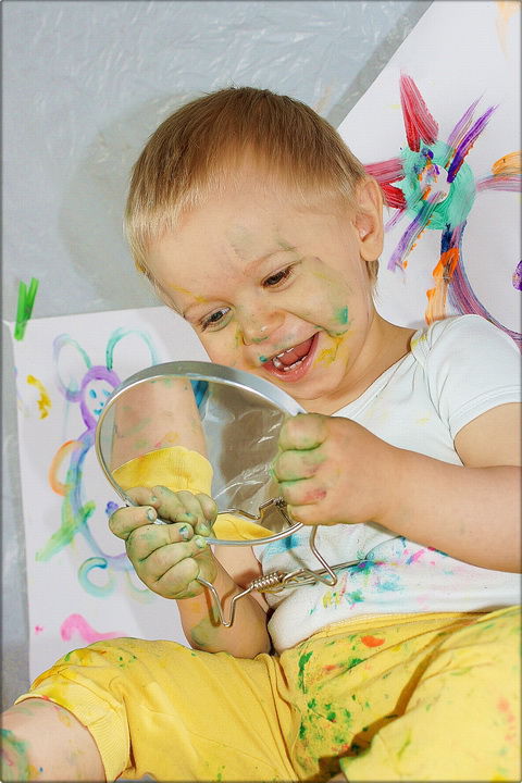 Niepotrzebne pędzelki i kartki, skoro mam własne stópki i paluszki :)
