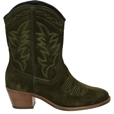 Szukając kowbojek bez wysokiej cholewki, warto zdecydować się na model przypominający nieco botki. Wykonano je z zamszu oraz skóry naturalnej, co stanowi harmonijne wyważenie pomiędzy trwałością a ładnym wyglądem. Dzięki noskowi w szpic buty ciągle przypominają kowbojki. Z boku znajduje się suwak, a wnętrze jest ocieplane za pomocą dodatkowej wkładki. To obuwie doskonale nadaje się nawet na mroźne dni. Można zestawić je z klasycznymi spodniami typu rurki. Są dostępne w kolorze czarnym i – dla osób, które chcą nieco zaszaleć – w odcieniu krwistej czerwieni.